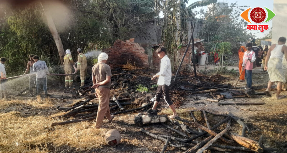 भोजन बनाते समय निकली चिन्गारी से दो रिहायशी छप्पर में लगी आग