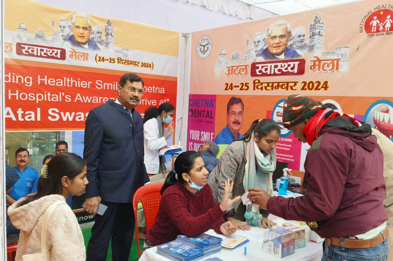 लखनऊ। भारत रत्न अटल बिहारी बाजपेई के जन्म शताब्दी वर्ष के उपलक्ष्य में दिलकुशा लॉन में लगे दो दिवसीय ‘अटल स्वास्थ्य मेला’ में चेतना डेंटल सेंटर के कैंप में दंत परीक्षण के लिए मरीजों की भीड़ उमड़ी। शिविर में पहले दिन करीब डेढ़ सौ मरीजों का दंत परीक्षण किया गया और लोगों को दांतों के प्रति जागरूक भी किया गया। स्टाल से लोगों को दवाइयां और टूथ पेस्ट भी वितरित किए गए।