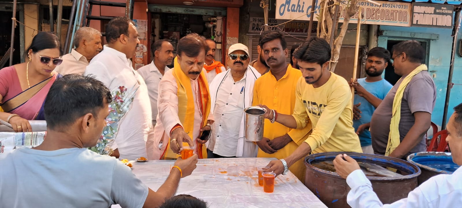 -उतरठिया कार्यक्रम मे बंसल जी ने अपने हाथों शर्बत व मिष्ठान वितरण किया।