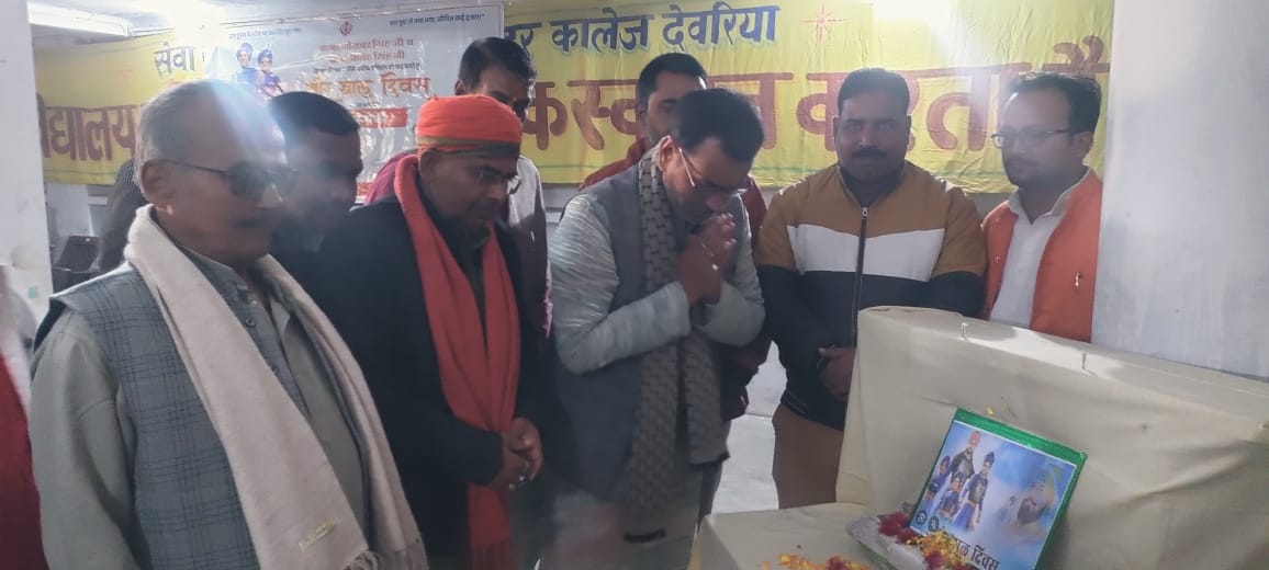 देवरिया सेवा समिति बनवारी लाल इंटर कॉलेज में प्रधानाचार्य डॉ. अजय मणि त्रिपाठी की अध्यक्षता में आयोजित वीर बाल दिवस के अवसर पर अपने अध्यक्षीय उद्बोधन में उन्होंने यह बातें कहीं। डॉक्टर मणि ने कहा, कि अतीत के गौरव एवं बलिदान को संजोकर ही देश के नागरिक राष्ट्र निर्माण में अपनी अहम भूमिका निभा सकते हैं। उन्होंने कहा कि सिख धर्म कोई अलग धर्म नहीं है, बल्कि सनातन हिंदू संस्कृति का ही एक स्वरूप है। कोई भी राष्ट्र अपने अतीत के इतिहास गौरव, एवं बलिदान को विस्मृत कर महान नहीं बन सकता है।