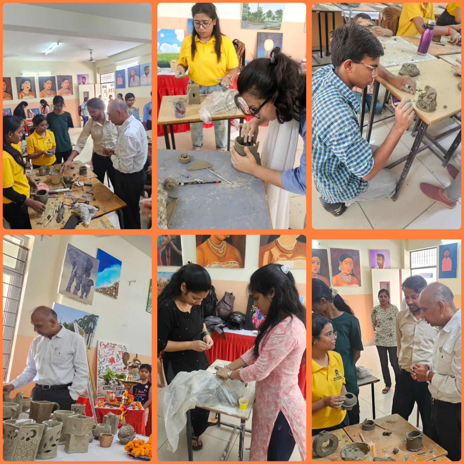 प्रशिक्षक नमित वर्मा ने बताया कि क्ले आर्ट, जिसे क्ले मॉडलिंग के रूप में भी जाना जाता है, मिट्टी को विभिन्न आकृतियों में ढालने की कला है जिससे सिरेमिक, आभूषण, चित्र और बहुत कुछ बनाया जा सकता है।मिट्टी का उपयोग करके तीन आयामी रूपों को आकार देने और बनाने की कला है। एक बड़ा प्रश्न उठता है कि मॉडलिंग के लिए किस प्रकार की मिट्टी का उपयोग किया जाता है? तो वह है सिरेमिक मिट्टी जैसे टेरा कोटा, मिट्टी के बरतन, पत्थर के बर्तन और चीनी मिट्टी के बरतन, साथ ही बहुलक मिट्टी और हवा से सूखने वाली मिट्टी, आमतौर पर मॉडलिंग के लिए उपयोग की जाती है।दिए गए निर्देशों के अनुसार प्रशिक्षकों ने अपनी कलाकृतियां बनाई। बच्चों और बड़ों ने उत्साह पूर्वक क्ले मॉडलिंग में प्रतिभाग़ किया और तरह-तरह के आकार के फूल दान निर्मित किए।
