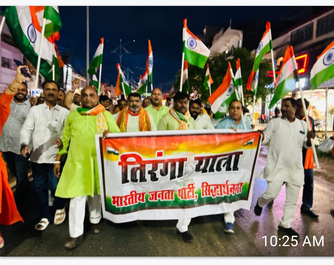 सिद्धार्थनगर। गौतमबुद्ध के जन्मस्थान से जुड़े भारत नेपाल सीमा के इस जनपद के मुख्यालय में प्रधानमंत्री नरेंद्र मोदी का आह्वान पर भव्य तिरंगा यात्रा का आयोजन किया गया। इस यात्रा में हजारों की संख्या में लोग शामिल हुए। भारत की उत्तरी सीमा पर नेपाल से सटे इस भूभाग पर आयोजित इस यात्रा का विशेष महत्व है। इस यात्रा के आयोजक शचींद्र उर्फ गुड्डू त्रिपाठी भारत नेपाल मैत्री विद्वत परिषद के अध्यक्ष भी हैं।