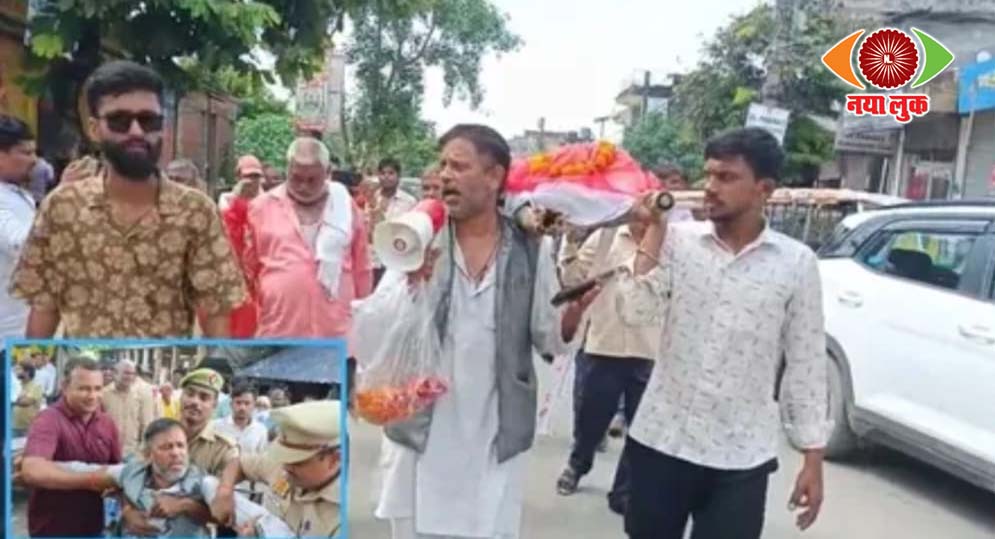 नौतनवां /महराजगंज। जनपद के नौतनवां तहसील में गुरुवार को माहौल उस समय तनावपूर्ण हो गया जब उपनिबंधक संदीप गौड़ के खिलाफ आंदोलन कर रहे एडवोकेट नागेंद्र शुक्ला ने तहसील परिसर में सांकेतिक शवयात्रा निकाल दी। बता दें कि एडवोकेट नागेंद्र शुक्ला पिछले 46 दिनों से क्रमिक अनशन कर रहे हैं। उनका आरोप है कि तहसील उपनिबंधक भ्रष्टाचार में लिप्त हैं और आम जनता के कामकाज में लगातार अनियमितताएं की जा रही हैं। इसी मुद्दे पर कार्रवाई की मांग करते हुए वे लगातार धरना-प्रदर्शन कर रहे हैं। गुरुवार को विरोध के क्रम में उन्होंने उपनिबंधक का सांकेतिक शवयात्रा निकालते हुए राम नाम सत्य है का नारा लगाया और परंपरागत ढंग से पिंडदान भी किया। शवयात्रा के दौरान परिसर में “उपनिबंधक मुर्दाबाद” के नारे गूंजते रहे। विरोध के बाद इस मामले ने तूल पकड़ लिया। शवयात्रा में शुक्ला के साथ दर्जनों अधिवक्ता और स्थानीय लोग शामिल थे।