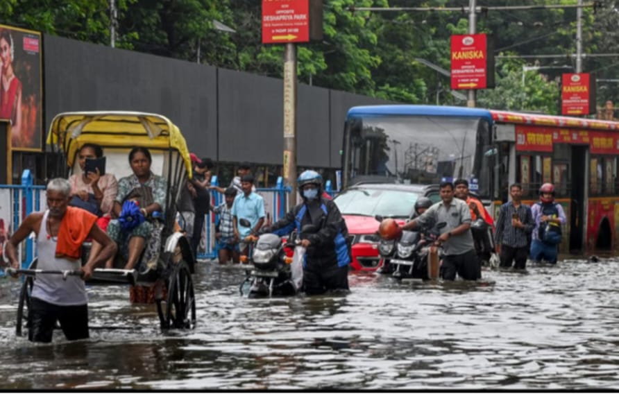 नई दिल्ली/कोलकाता । पश्चिमी बंगाल की राजधानी कोलकाता में सोमवार रात को हुई मूसलधार बारिश के कारण सामान्य जीवन अस्त-व्यस्त हो गया। भारी बारिश के कारण कई इलाके जलमग्न हो गए, जिससे यातायात, सार्वजनिक परिवहन और दैनिक गतिविधियां ठप हो गईं। पटरियों पर जलभराव के कारण शहर और उपनगरों में ट्रेन और मेट्रो रेल सेवाएं बाधित हुईं। लाल बाजार पुलिस नियंत्रण कक्ष के एक अधिकारी ने मीडिया को बताया, “अभी तक प्राप्त सूचना के अनुसार करंट लगने के कारण सात लोगों की मौत हो गयी है। आधी रात के बाद शुरू हुई बारिश के कारण सड़कें जलमग्न हो गईं और शहर में कई घरों और आवासीय परिसरों में पानी घुस गया।