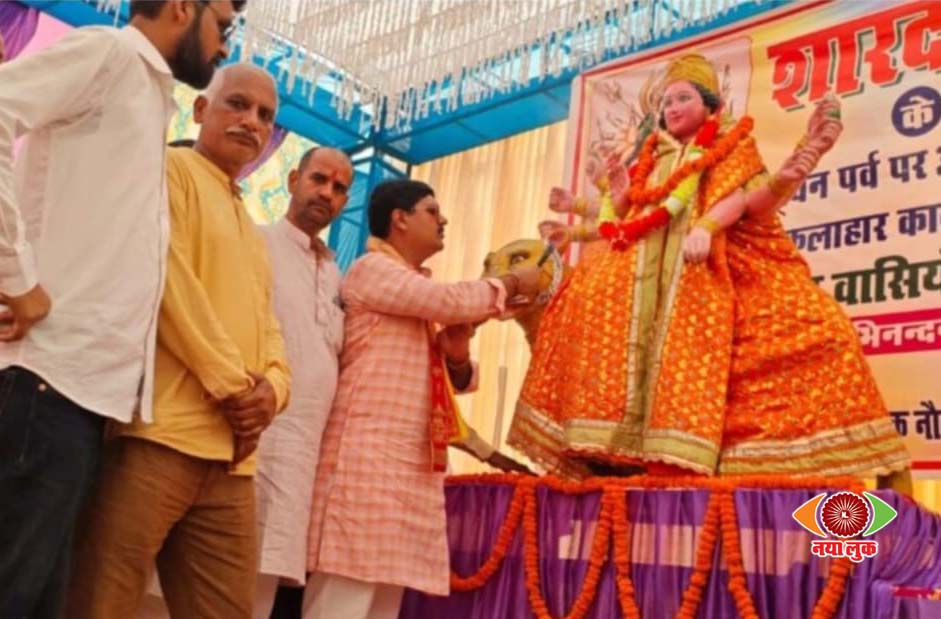 नौतनवां/महराजगंज। शारदीय नवरात्र के पावन पर्व पर नौतनवां विधानसभा क्षेत्र के लक्ष्मीपुर विकासखंड स्थित ब्लॉक परिसर में सोमवार को नौतनवां विधायक ऋषि त्रिपाठी द्वारा एक भव्य फलाहार कार्यक्रम का आयोजन किया गया था। जिसमें व्रतधारी श्रद्धालुओं, स्थानीय कार्यकर्ताओं और क्षेत्रीय शुभचिंतकों की भारी भीड़ उमड़ पड़ी। यह फलाहार कार्यक्रम नवरात्रि के दौरान प्रतिवर्ष आयोजित किया जाता है, जिसमें क्षेत्रीय लोगों को भक्ति और सेवा के वातावरण में सहभागिता का अवसर मिलता है। इस वर्ष भी परंपरा को आगे बढ़ाते हुए कार्यक्रम को बड़े ही भव्य और सुव्यवस्थित रूप से संपन्न किया गया। कार्यक्रम का शुभारंभ विधायक ऋषि त्रिपाठी द्वारा मां दुर्गा की प्रतिमा के पूजन और आरती से किया गया। तत्पश्चात श्रद्धालुओं को फलाहार वितरित किया गया।