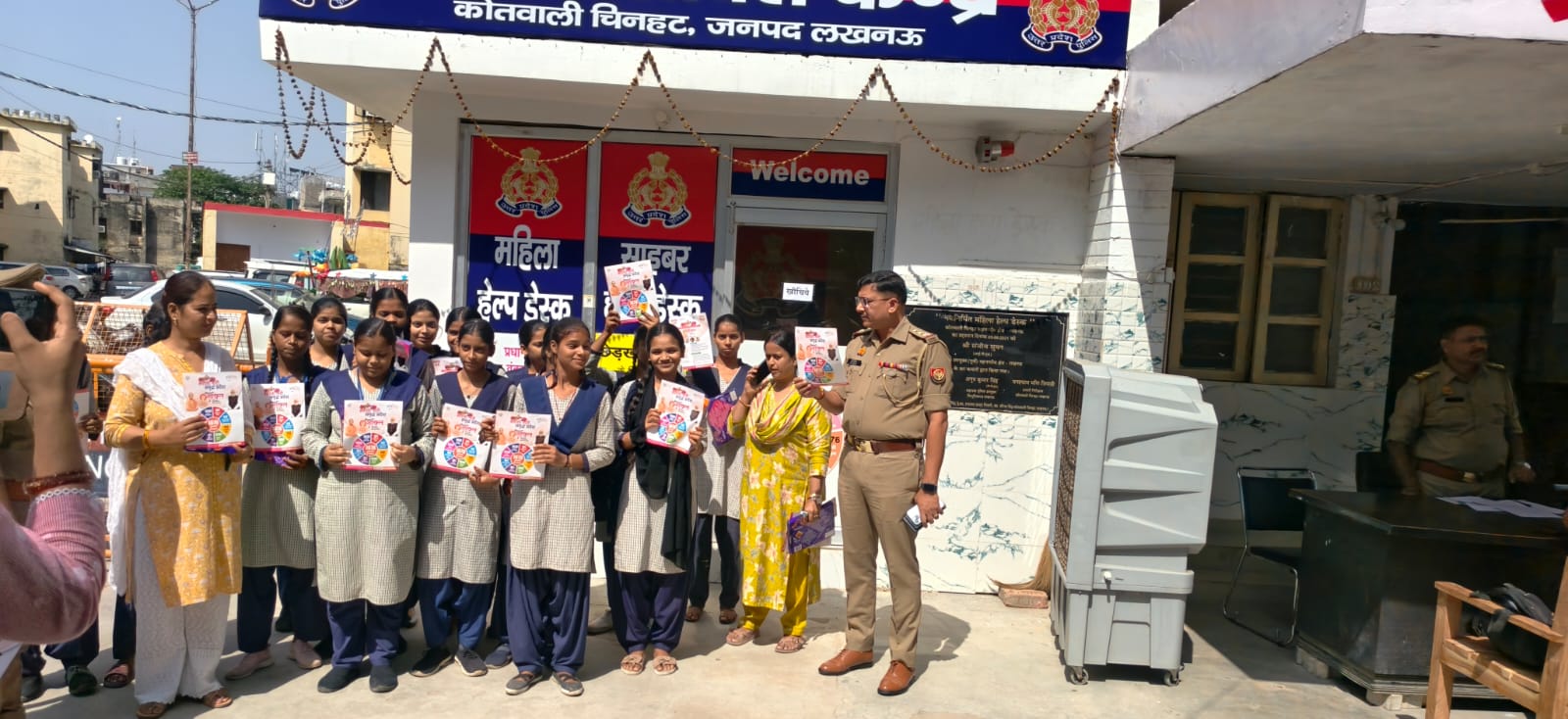 लखनऊ। मुख्यमंत्री योगी आदित्यनाथ के निर्देशन में बहू बेटियों की सुरक्षा के लिए चलाए जा रहे मिशन शक्ति अभियान के तहत इंस्पेक्टर चिनहट दिनेश चंद्र मिश्रा ने कोतवाली परिसर में गुरुवार को चिनहट कस्बा स्थित राष्ट्रीय पिता इंटर कॉलेज की महिलाओं, बच्चों एवं छात्राओं को साइबर अपराध, मुकदमों के अलावा कई अहम जानकारी दी। इस मौके पर महिला उपनिरीक्षक सरिता यादव, महिला कांस्टेबल रिंकी सहित कई पुलिसकर्मी मौजूद रहे।