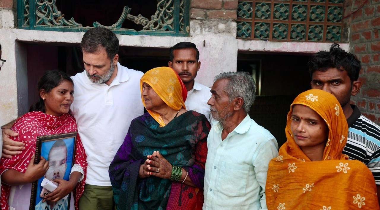 राहुल से मिलकर रोने लगा मृतक हरिओम वाल्मीकि का परिवार
