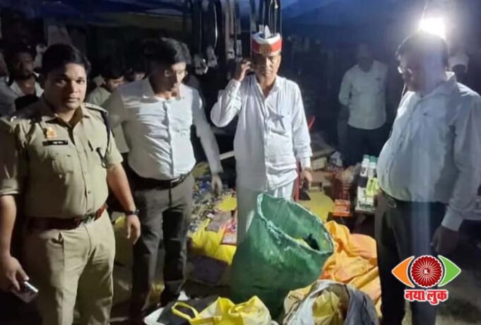 सोनौली कोतवाली क्षेत्र के फरेंदी बाजार से तीन बोरी पटाखे जब्त, पुलिस को सौंपे