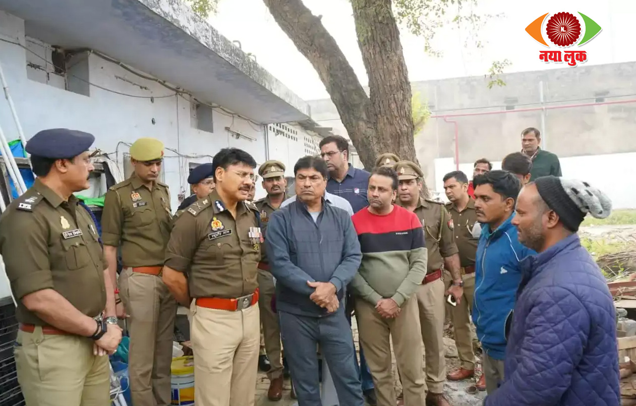 घटनास्थल पर छानबीन करते पुलिस अधिकारी