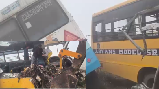 चरखी दादरी में कोहरे का कहर: रोडवेज और स्कूल बस की आमने-सामने टक्कर