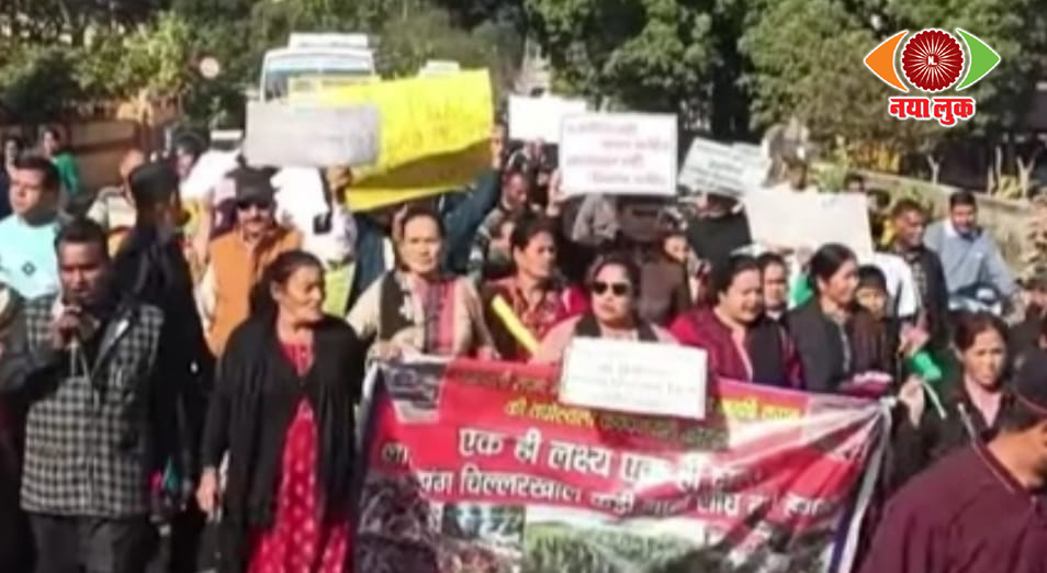 लालढांग-चिल्लरखाल मोटर मार्ग की मांग को लेकर निकाली आक्रोश रैली, हाईवे जाम