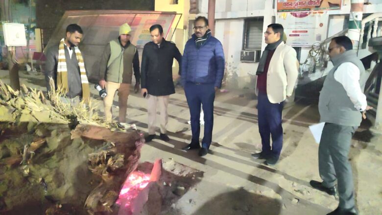 जिलाधिकारी ने बीती रात नगर पालिका महराजगंज क्षेत्र में अलाव और रैन बसेरों का किया औचक निरीक्षण