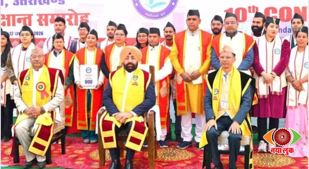 हल्द्वानी। राज्यपाल ले.ज.(से.नि.) गुरमीत सिंह ने आज उत्तराखण्ड मुक्त विश्वविद्यालय के दशम दीक्षांत समारोह में मुख्य अतिथि के रूप में 18,146 विद्यार्थियों को स्नातक, स्नातकोत्तर एवं डिप्लोमा स्तर की उपाधियाँ प्रदान की, जबकि 6 शोधार्थियों को पीएच.डी. की उपाधि से सम्मानित किया गया। राज्यपाल ने विद्यार्थियों को युवा दिवस की बधाई देते हुये कहा कि सत्य, अनुशासन, कर्तव्यनिष्ठा एवं सामाजिक उत्तरदायित्व के मूल्यों के साथ निरंतर सीखते रहने का संदेश दिया। कुलाधिपति ने विश्वविद्यालय की शैक्षिक कार्यों की सराहना की तथा कहा कि विश्वविद्यालय ने उच्च शिक्षा को घर घर पहुँचाया। उन्होंने कहा कि विश्वविद्यालय अच्छा कार्य कर रहा है, विश्वविद्यालय ने कई शिक्षण संस्थान, कारागार, सेना, आईआईटी रुड़की जैसे संस्थानों से समझौता कर सभी को उच्च शिक्षा से जोड़ने का काम किया है।