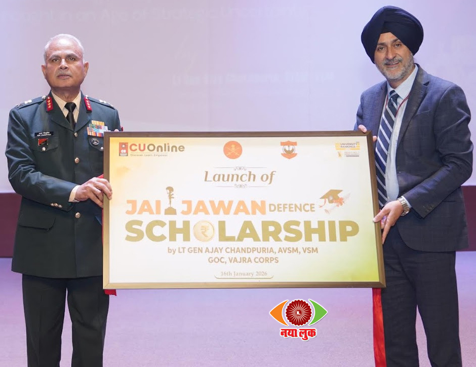 “यह स्कॉलरशिप सीयू ऑनलाइन द्वारा प्रदान किए जा रहे सभी 12 ऑनलाइन डिग्री प्रोग्राम पर लागू है, जिसमें बीबीए, बीसीए, एमबीए (जनरल), एमबीए (बिजनेस एनालिटिक्स), एमसीए, बीए जेएमसी, बीबीए बीए, एमएससी डेटा साइंस, एमए इंग्लिश, एमए इकोनॉमिक्स, एमएससी मैथ्स एवं एमए जेएमसी शामिल हैं। ‘CU ऑनलाइन जय जवान स्कॉलरशिप’ का लाभ उठाने के लिए, आवेदकों को सीयू ऑनलाइन के वेब पोर्टल (www.onlinecu.in) पर जाकर एक ऑनलाइन डिग्री प्रोग्राम चुनना होगा, माता-पिता की सर्विस का प्रूफ अपलोड करना होगा और स्कॉलरशिप सेक्शन के तहत ‘डिफेंस सर्विस–जय जवान’ चुनना होगा। चंडीगढ़ यूनिवर्सिटी की यह पहल दुनिया की बेहतरीन ऑनलाइन शिक्षा तक पहुंच प्रदान करके मिलिट्री परिवारों को सशक्त बनाने की दिशा में एक कदम है। यह न केवल डिजिटल शिक्षा को बढ़ावा देगा बल्कि यह भी सुनिश्चित करेगा कि किसी भी सैनिक का बच्चा वित्तीय कारणों से शिक्षा से वंचित न रहे। कि युद्ध, इच्छाशक्ति और बुद्धिमत्ता: रणनीतिक अनिश्चितता के दौर में भारत की उभरती सैन्य सोच” विषय पर एक सेशन के दौरान अपने भाषण में मुख्य अतिथि लेफ्टिनेंट जनरल अजय चांदपुरिया, एवीएसएम, वीएसएम, जनरल ऑफिसर कमांडिंग, वज्र कॉर्प्स ने कहा, “भारत ने ऑपरेशन सिंदूर से पहलगाम आतंकी हमले का पाकिस्तान को मुंहतोड़ जवाब देते हुए यह स्पष्ट सन्देश दिया कि आतंकवाद अब बर्दाश्त नहीं किया जाएगा और जो भी आतंकवादियों की मदद करेगा, उसे इसकी भारी कीमत चुकानी पड़ेगी।