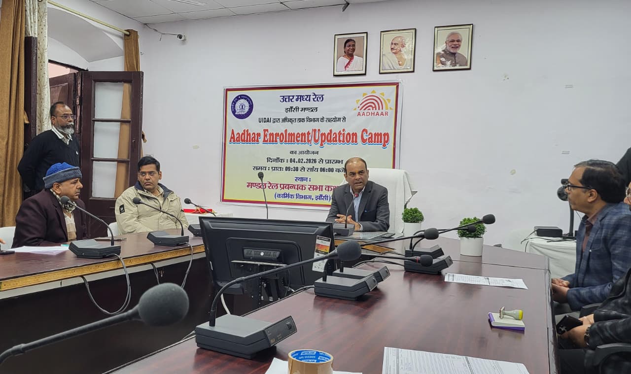 झांसी।  रेल कर्मचारियों और सेवानिवृत्त कर्मियों को आधार से जुड़ी सुविधाएं एक ही स्थान पर उपलब्ध कराने के उद्देश्य से आज चार फरवरी 2026 को झांसी रेल मंडल में आधार नामांकन एवं अपडेशन शिविर की शुरुआत की गई। यह शिविर UIDAI द्वारा अधिकृत डाक विभाग के सहयोग से तथा कार्मिक विभाग के तत्वावधान में मंडल रेल प्रबंधक कार्यालय के द्वितीय सभा कक्ष में आयोजित किया जा रहा है। शिविर का उद्घाटन मंडल रेल प्रबंधक अनिरुद्ध कुमार ने किया। इस अवसर पर उन्होंने स्वयं अपने आधार कार्ड में आवश्यक सुधार कराकर इस पहल को प्रोत्साहित किया और कर्मचारियों को इसका अधिक से अधिक लाभ उठाने के लिए प्रेरित किया।