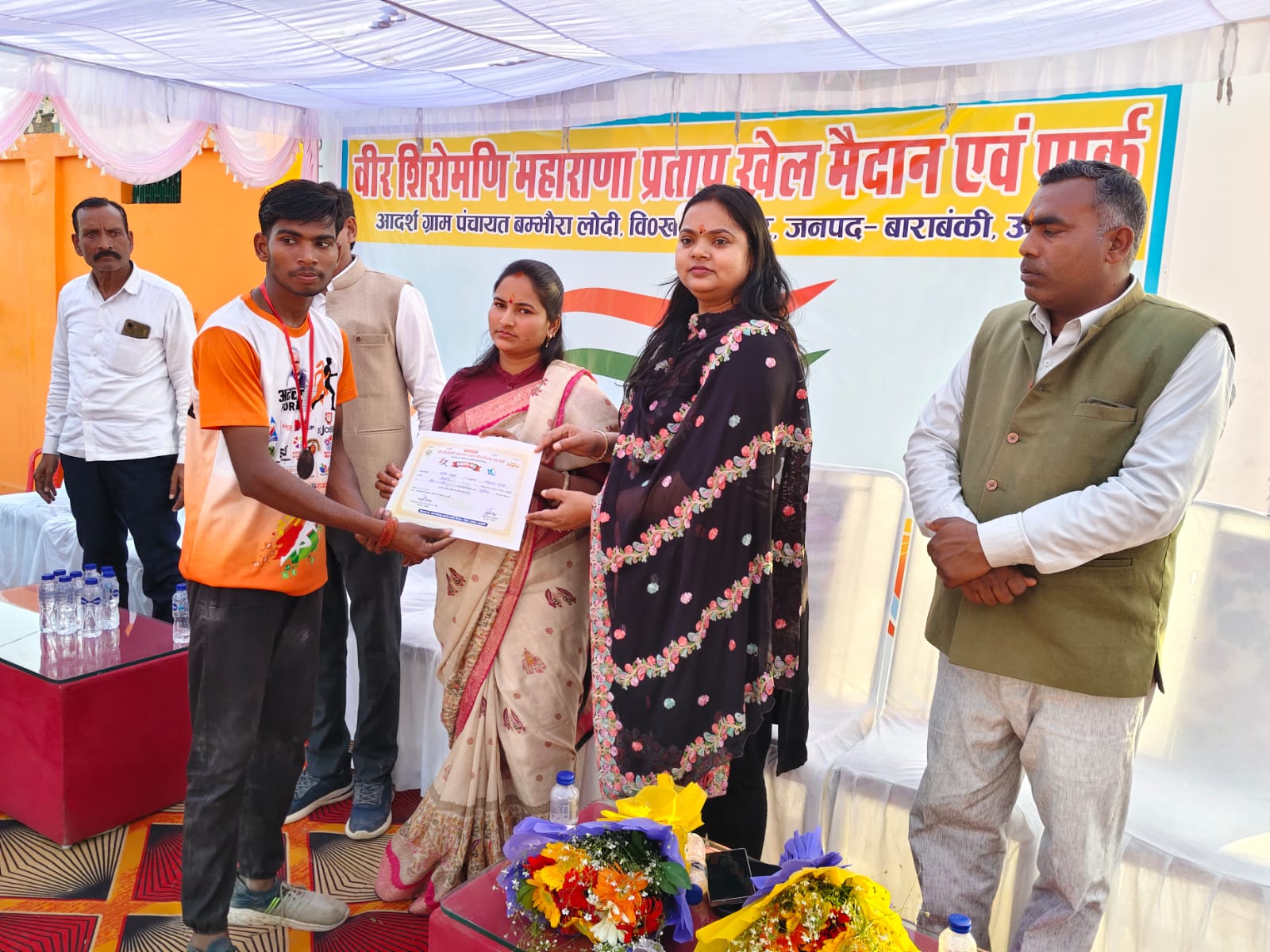 बाराबंकी। जिले के विकासखंड सिद्धार्थ क्षेत्र अंतर्गत ग्राम पंचायत बंभौरा लोधी में सोमवार को मनरेगा योजना के तहत निर्मित वीर शिरोमणि महाराणा प्रताप पार्क एवं खेल मैदान का भव्य लोकार्पण किया गया। इस अवसर पर ग्रामीणों में खासा उत्साह देखने को मिला। लोकार्पण कार्यक्रम में खंड विकास अधिकारी पूजा सिंह, ब्लॉक प्रमुख आरती रावत एवं डीसी मनरेगा बृजेश त्रिपाठी मुख्य अतिथि के रूप में उपस्थित रहे। अतिथियों ने फीता काटकर पार्क और खेल मैदान का विधिवत उद्घाटन किया।