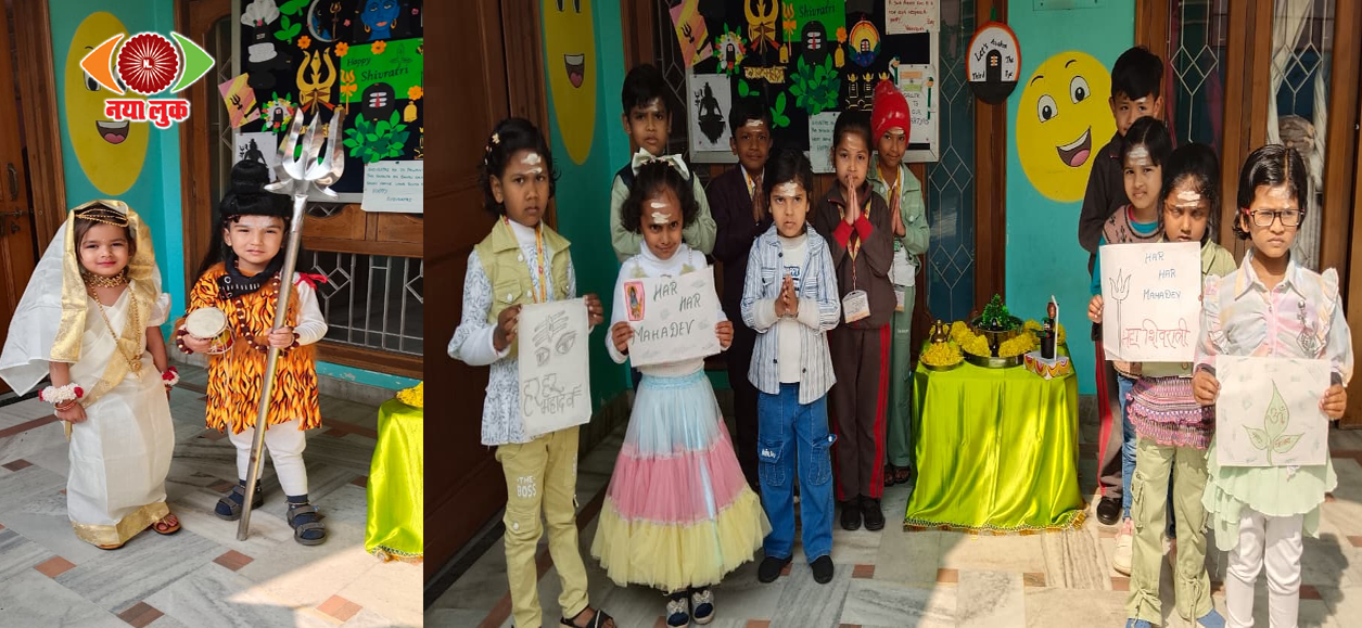 नौतनवां/महराजगंज। नौतनवां के बचपन स्कूल के बच्चों ने शिवरात्रि का पर्व सेलिब्रेट किया। इस अवसर पर बच्चों ने भगवान शिव की अराधना की और उनका आशीष लिया। चारो तरफ सिर्फ ओम नमः शिवाय की गुंज थी। पूरा विद्यालय शिवमय हो गया था। इस अवसर पर बच्चों को भगवान शिव के जीवन पर आधारित कई रोचक और ज्ञानवर्धक कहानियां सुनाई और दिखाई गई। सभी बच्चे हरे रंग की पोशाक में बड़े ही सुन्दर लग रहे थे। बच्चों का परिचय कई नये शब्दों से कराया गया जैसे – त्रिशूल, डमरू, कैलाश,बेलपत्र, शिवलिंग, नंदी ,गंगा , नीलकंठ आदि। बच्चों को शिव जी के अलग अलग नाम का भी परिचय दिया गया। बच्चों ने डांस, क्विज, और प्रार्थना करके बहुत कुछ सीखा। डायरेक्टर अंजली ने सभी को पर्व की बधाई दी और बच्चों को महादेव नाम की सार्थकता को समझाया। उन्होंने बताया कि जो स्वयं से पहले सबका सोचे वही है महादेव। उन्होंने बच्चों को 14 फरवरी के बारे में बताया कि 14 फरवरी को हम वैलेंटाइन डे के रूप में सेलिब्रेट करते है जो प्यार का दिन है , प्यार अपनों से, अपने परिवार से, अपने दोस्तों से, अपने साथ काम करने वालों से, अपने पडोसी से, अपने देश से आदि।