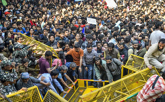 - JNU ‘लांग मार्च’ पर टकराव: गेट पर रोके जाने के बाद पुलिस-छात्रों में धक्का-मुक्की