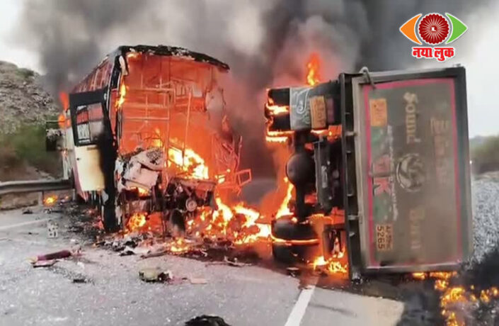 मारकापुरम। आंध्र प्रदेश के मारकापुरम जिले में रायवरम के पास गुरुवार को एक दिल दहला देने वाला सड़क हादसा हुआ। यात्रियों से भरी बस और बजरी से लदे टिपर ट्रक के बीच जोरदार टक्कर के बाद दोनों वाहनों में भीषण आग लग गई, जिससे कई यात्री उसमें फंस गए। आग के गोले में तब्दील हुई […]
