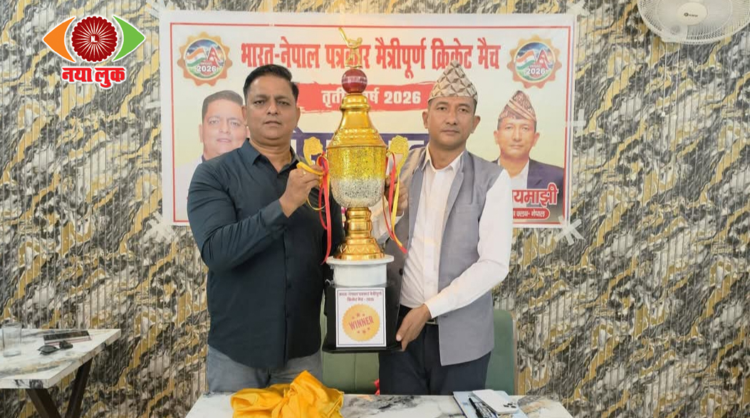 नौतनवां/महराजगंज।भारत -नेपाल संबंधों को और अधिक मजबूत करने के उद्देश्य से प्रेस क्लब ऑफ महराजगंज के तत्वाधान में तृतीय वर्ष भारत नेपाल पत्रकार मैत्रीपूर्ण क्रिकेट मैच का आयोजन 18 अप्रैल शनिवार को नौतनवां इंटर कॉलेज नौतनवां के खेल मैदान पर किया जाएगा। जिसमें दोनों देशों के पत्रकार बड़ी संख्या में हिस्सा लेंगे। इस मैत्रीपूर्ण क्रिकेट मैच को लेकर शुक्रवार को नौतनवां के एक सभागार में भारतीय मीडिया टीम के कप्तान एवं प्रेस क्लब ऑफ महराजगंज के अध्यक्ष अमित त्रिपाठी एवं नेपाली टीम के कप्तान एवं लुंबिनी प्रेस क्लब नेपाल के अध्यक्ष कमल राय माझी ने प्रेस कॉन्फ्रेंस कर विजेता और उपविजेता ट्रॉफी का अनावरण किया।