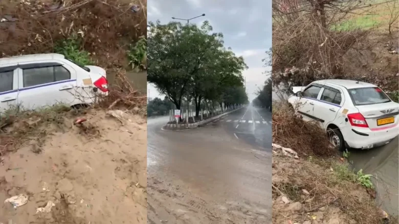 ग्रेटर नोएडा में 90 डिग्री मोड़ बना मौत का खतरा, कोहरे में नाले में गिरी कार, बाल-बाल बचे दो लोग
