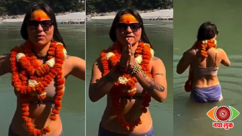 गजब ढा रहा है बिकनी पहन कर गंगा में नहाती विदेशी महिला का वीडियो