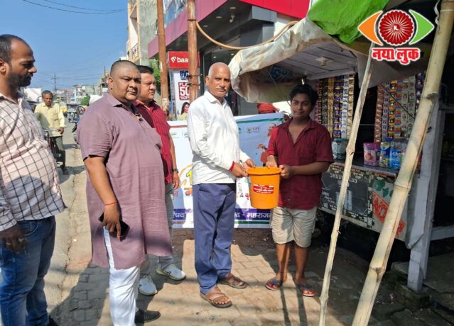 नौतनवां नगर पालिका अध्यक्ष ने पटरी व्यवसायियों में वितरित किया कूड़ेदान