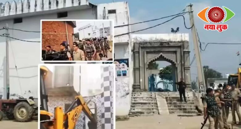 संभल में पुलिस और पैरामिलिट्री की मौजूदगी में अवैध मस्जिद को तोडा