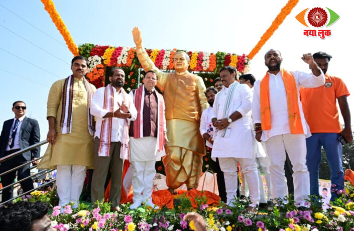 अटल-मोदी सुशासन यात्रा में मुख्यमंत्री धामी ने किया अटल प्रतिमा का अनावरण